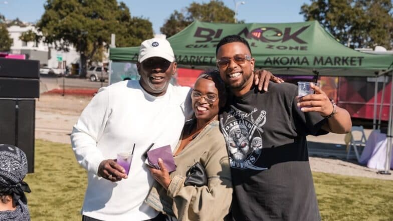 समुदाय के सदस्य अकोमा ग्रैंड मार्केट में इकट्ठा होते हैं, स्थानीय विक्रेताओं का समर्थन करते हैं और पूर्वी ओकलैंड में काली संस्कृति का जश्न मनाते हैं।